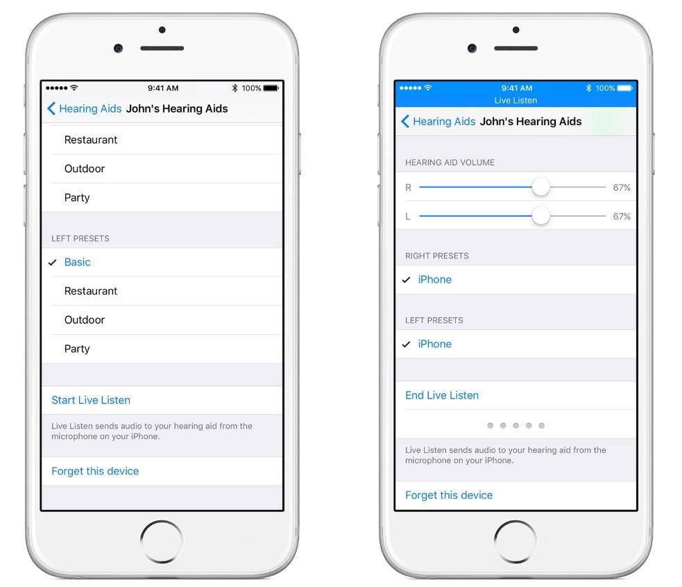 The Live Listen feature was first launched in 2014. iOS devices supported with the Made for iPhone hearing aid program practically turn their iPhone or iPad into a microphone. Once the Live Listen feature is activated, a person can hear through his or her iOS-compatible hearing aid any audio or voice that the iOS device picks up even in a noisy or very open environment. That same function will be incorporated onto the AirPods once iOS 12 is installed.