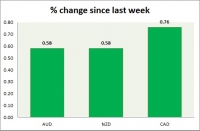 Dollar index trading at 96.08 (-0.21%) Strength meter (today so far) - Aussie +0.73%, Kiwi +0.40%, Loonie +0.64%. Strength meter (since last week) - Aussie -0.58%, Kiwi +0.58%, Loonie +0.76%. AUD/USD - Trading at...