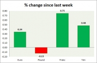 Dollar index trading at 96.10 (+0.10%). Strength meter (today so far) - Euro -0.01%, Franc +0.35%, Yen -0.14%, GBP -0.06% Strength meter (since last week) - Euro +0.34%, Franc +0.75%, Yen +0.48%, GBP -0.13% EUR/USD...