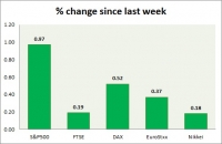 Equities are all trading in green today. Performance this week at a glance in chart table - SP 500 - SP 500 is sharply up as investors push money into equities amid risk favoring sentiment. Todays range 1981-1946 SP...