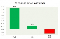 Dollar index trading at 97.52 (-0.26%) Strength meter (today so far) - Aussie +0.86%, Kiwi +0.94%, Loonie -0.07%. Strength meter (since last week) - Aussie +1.49%, Kiwi +0.24%, Loonie -0.30%. AUD/USD - Trading at...