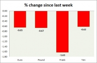 Dollar index trading at 97.87 (-0.03%). Strength meter (today so far) - Euro +0.07%, Franc -0.19%, Yen +0.13%, GBP -0.60% Strength meter (since last week) - Euro -0.65%, Franc -1.63%, Yen -0.62%, GBP -0.67% EUR/USD...
