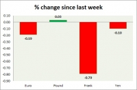 Dollar index trading at 97.41 (-0.04%). Strength meter (today so far) - Euro +0.09%, Franc -0.37%, Yen 0.00%, GBP +0.2% Strength meter (since last week) - Euro -0.19%, Franc -0.79%, Yen -0.10%, GBP +0.03% EUR/USD...