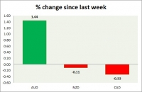 Dollar index trading at 97.49 (+0.04%) Strength meter (today so far) - Aussie +1.91%, Kiwi +0.30%, Loonie +0.26%. Strength meter (since last week) - Aussie +1.44%, Kiwi -0.11%, Loonie -0.33%. AUD/USD - Trading at...
