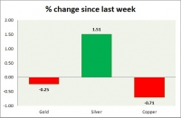 Metals are trading in green post-employment cost data. Performance this week at a glance in chart table - Gold - Gold jumped back but was rejected at $1100 mark again and finding bids around $1080 mark. Todays range -...