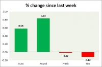 Dollar index trading at 96.86 (-0.64%). Strength meter (today so far) - Euro +0.97%, Franc +0.70%, Yen +0.15%, GBP +0.20% Strength meter (since last week) - Euro +0.58%, Franc -0.02%, Yen -0.12%, GBP +0.83% EUR/USD...