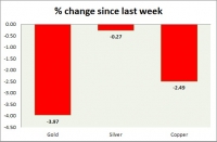 Metals pack slipped further down today. Performance this week at a glance in chart table - Gold - Gold is fallen below $1100 as sellers remain at large. Todays range - $1104-$1086. Gold is likely to trade with...