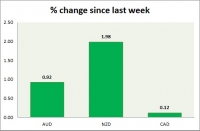Dollar index trading at 97.31 (-0.75%) Strength meter (today so far) - Aussie +0.84%, Kiwi +0.96%, Loonie +0.32%. Strength meter (since last week) - Aussie +0.92%, Kiwi +1.98%, Loonie +0.12%. AUD/USD - Trading at...