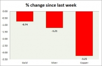 Metals are consolidating today. Performance this week at a glance in chart table - Gold - Gold is treading water around $1160 area. Todays range - $1164-$1157 Sell gold with target around $1100 and stop around...
