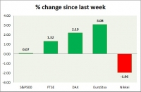 Equities are all trading in green today as risk aversion subsided further. Performance this week at a glance in chart table - SP 500 - SP once again got support around 2040 area, trying to clear resistance around 2080...