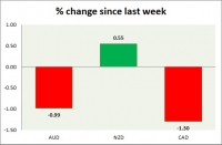 Dollar index trading at 96.72 (+0.53%) Strength meter (today so far) - Aussie +0.15%, Kiwi +0.14%, Loonie +0.01%. Strength meter (since last week) - Aussie -0.99%, Kiwi +0.55%, Loonie -1.30%. AUD/USD - Trading at...