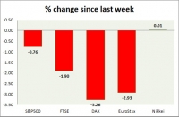 Equities are trading in highswings today across globe. Performance this week at a glance in chart table - SP 500 - SP gained around 2111, however rally seem to be turning sour facing sharp selloff. Retail sales...