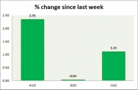 Dollar index trading at 93.88 (-0.73%). Strength meter (today so far) - Aussie +1.54%, Kiwi +1.06%, Loonie +0.57%. Strength meter (since last week) - Aussie +2.35%, Kiwi +0.03%, Loonie +1.11%. AUD/USD - Trading at...