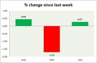 Dollar index trading at 94.52 (-0.52%). Strength meter (today so far) - Aussie +0.85%, Kiwi +0.32%, Loonie +0.43%. Strength meter (since last week) - Aussie +0.44%, Kiwi -1.71%, Loonie +0.27%. AUD/USD - Trading at...