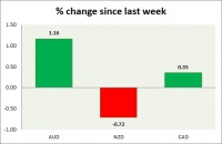 Dollar index trading at 94.58 (-0.04%). Strength meter (today so far) - Aussie +0.42%, Kiwi +0.47%, Loonie -0.01%. Strength meter (since last week) - Aussie +1.16%, Kiwi -0.72%, Loonie +0.35%. AUD/USD - Trading at...