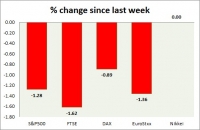 Global sell offs are driving equity prices lower today. Performance this week at a glance in chart table - SP 500 - SP has broken below 2100 once more to test the supports. 2080 area would provide some interim...