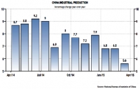 Chinese industrial production under stress, hopes of improvements in H2 2015
