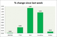 Equities are all trading in green today, with Europe seeming to be more bullish. Performance this week at a glance in chart table - SP 500 - SP traded to new all-time high today, around 2125 area. Higher than expected...