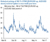 In order to take advantage of vol/correlation setup, one could play directionally stronger reserve currency vs. weaker high beta (vs. the USD) via worst-of options. Rich correlations and still generally depressed vols...