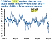 Back-end (2Y) EURUSD and EURJPY vols look deep value after the de-pricing of European political risk, and materially cheap adjusted for short-end FX and interest rate vols. A byproduct of the violent de-pricing of...