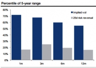The KRW has rallied significantly in the past three months; typically this would mean sharply lower implied vol and skew. KRW implied vol (1m to 1y) is in the upper half of the 5-year range whereas 25d risk reversals...