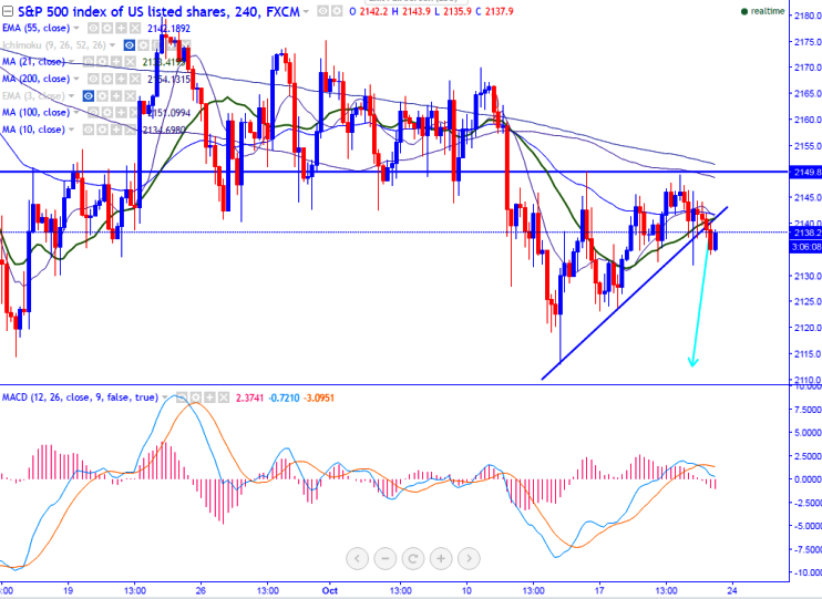 It is good to sell on rallies around 2135-2140 with SL around 2150 for the TP of 2112