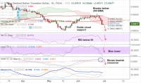 NZD/CAD takes a breather after massive slump in the previous session, bias remains lower. The pair is consolidating break below 200-DMA, takes support at nearly converged cloud base and 61.8% Fib. Break below...