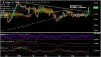 Copper is consolidating previous sessions spike, bias still higher. The pair is extending break above 200-DMA, we see scope for further upside. Price has edged above daily cloud and has broken strong trendline...