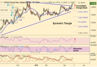 GBP/NZD consolidates breakout at Triangle top, bias higher. The major trades with a bullish momentum, scope for test of 1.98 levels. RSI shows strength at 69 levels with room to run further. Stochs are highly...
