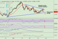 AUD/USD was rejected at major resistance at 0.7815 (converged 200-DMA and trendline), bias bearish. The major has slipped below 20-DMA at 0.7717 and we see scope for further weakness. Technical indicators have...
