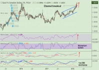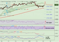 EUR/CAD has shown a decisive break at channel top resistance at 1.57, bias higher. The pair trades with a major bullish bias and momentum studies are also bullish. Price action holds above major moving averages...