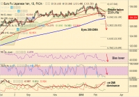 EUR/JPY breaks below 23.6% Fib, is on track to test 200-DMA at 131.13. Technical indicators are bearish. RSI and Stochs are biased lower. Momentum studies are heavily bearish, but Stochs are in oversold levels so...