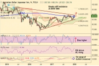 AUD/JPY has shown breakout at stiff resistance at 200W SMA at 88.04, bias higher. Technical studies support further upside. We now see scope for test of 89.40 levels (trendline). The pair has shown break of...