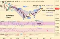 Our study on EUR/JPY weekly charts shows the pair has been trending sideways since Sept. Upside remains capped below 61.8% Fib retrace of 109.205 to 149.787 rally at 134.28. We evidence a Bearish Bat harmonic...