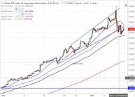 Nikkei declined sharply after hitting 25- year high at 23423 following a negative close in Wall Street and slightly stronger yen. The index has jumped almost 10% since Oct 23rd after Abe land slide victory and is in...