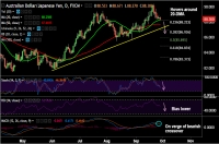AUD/JPY holds above 20-DMA support at 88.25, we see weakness on break below. Technical indicators are bearish, scope for test of test of major trendline support at 87.20. The pair is continuing downside along the...
