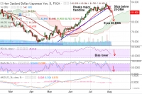 NZD/JPY extends grind lower after rejection at channel top, bias still lower. The pair has broken major trendline support and closed below 20-DMA on Tuesdays trade. We see a bearish 5 and 20-DMA crossover on...