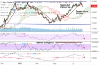 NZD/JPY is extending slide for 5th consecutive session after rejection at channel top. The pair has broken and closed below 20-DMA on Tuesdays trade. Technical indicators have turned bearish, RSI and Stochs are...