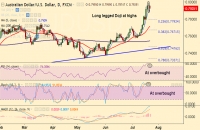 AUD/USD is extending declines from 2-year highs at 0.7987, bias is neutral for now. Momentum indicators are at overbought levels and are showing a turn lower. Further the occurrence of a long-legged Doji at highs...