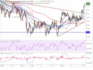FTSE100 forms a minor bottom near 7300 and recovered sharply from that level. The index jumped till 7468 at the time of writing. It is currently trading around 7469. UK FTSE100 broken minor trend line resistance...