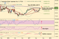 AUD/JPY has broken major trendline resistance at 87.30, bias remains higher. The pair is on track to test weekly 200-SMA at 88.70. Violation there could see further upside. Next major bull target above weekly...
