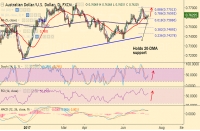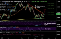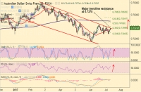AUD/CHF hovers around major trendline resistance at 0.7375, bias higher. Technical indicators have turned bullish, RSI and Stochs are biased higher. The pair has broken above 20-DMA and 5-DMA has turned on daily...