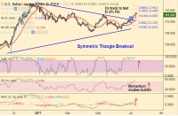 USD/JPY trades with a highly bullish bias, momentum studies bullish. The major is extending gains after breakout of Symmetric Triangle Pattern. Mondays disappointing Machinery Orders and Current Account data from...