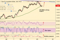 EUR/AUD rejected at lows, edges higher from session lows at 1.4800 to currently trade at 1.4865 levels. The single currency muted to downbeat German economic sentiment for June which came in at 18.6 vs. 21.5...