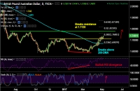 GBP/AUD has broken major trendline resistance at 1.7120, we see scope for further gains. The pair is holding break above 200-DMA, we see weakness only on close below. Bullish RSI divergence adds to upside bias in...