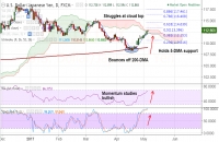 USD/JPY price action breaks into daily cloud, but upside seems to struggling to break past cloud top. We find strong resistance at 112.80/90 levels, only break above could see further gains. Momentum studies are...