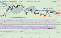 GBP/AUD rejected at 100-DMA, intraday bias bearish. Price action dips below daily cloud and is currently holding 20-DMA support at 1.6182. Technical studies are bearish, RSI is biased lower and Stochs have rolled...