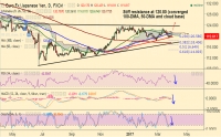 EUR/JPY is grinding along major trendline support currently at 119.65. Upside finds stiff resistance at 120.80 (converged 100-DMA, 50-DMA and cloud base). We would any signs of reversal only on close...