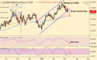 AUD/CHF fails to hold gains above 20-DMA, is extending downside for 2nd consecutive session. The pair has broken below major channel base support at 0.7645 on Wednesdays trade. Weaker-than-expected China CPI data...