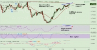 Nikkei has continued its loosing streak and broken 19200 level yesterday. Nikkei is facing strong support at 30- day EMA at 19160 and any further weakness can be seen only below that level. It is currently trading at 19231...